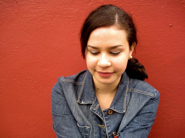I think my most successful portrait is the top one of Ava. I used rule of thirds to make sure I wasn't putting her right in the center of the photo, and I think having it a little off center makes it easier to look at. I shot at about her level, but standing a little above her so it would be a flattering angle. I think the red background works well because its simple but vibrant, so it makes her stand out from the background while still keeping her the main subject. I edited the saturation and blacks in Lightroom to bring out the red in the background and make the shadows on her and her hair stand out more.